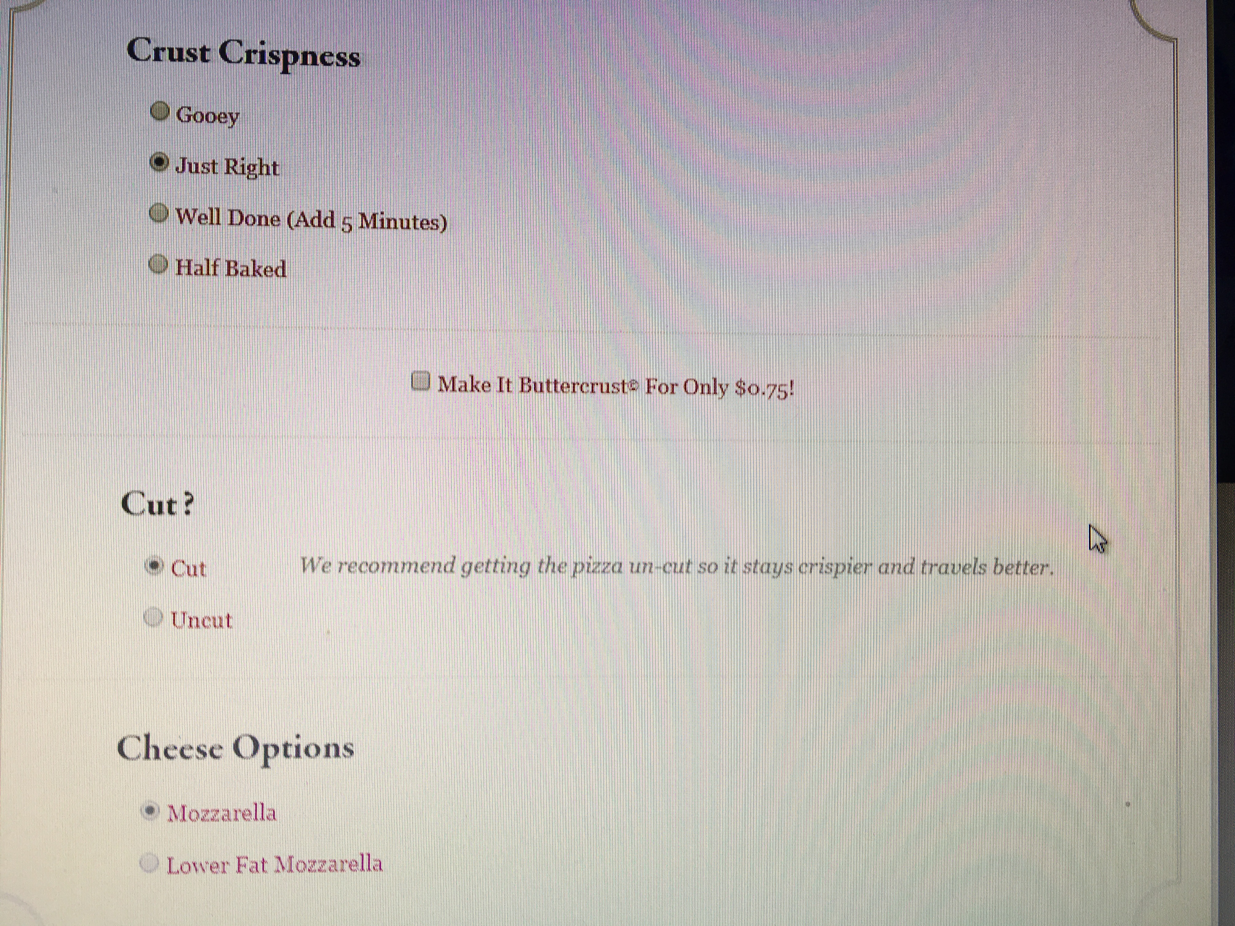 And finally, because I can’t leave both of you with a thinly veiled racist comment, I ordered a pizza a few weeks ago that sounded a lot like I was filling out a dating preferences profile: