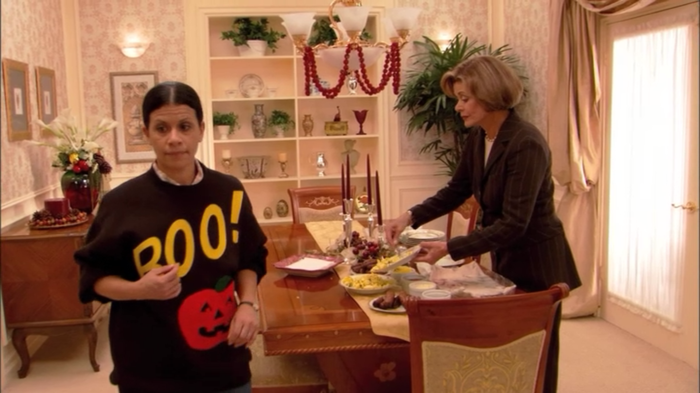 Little known fact from Arrested Development: in all of the holiday episodes, Lupe can we seen wearing a Bluth family sweater from the most recent prior holiday.