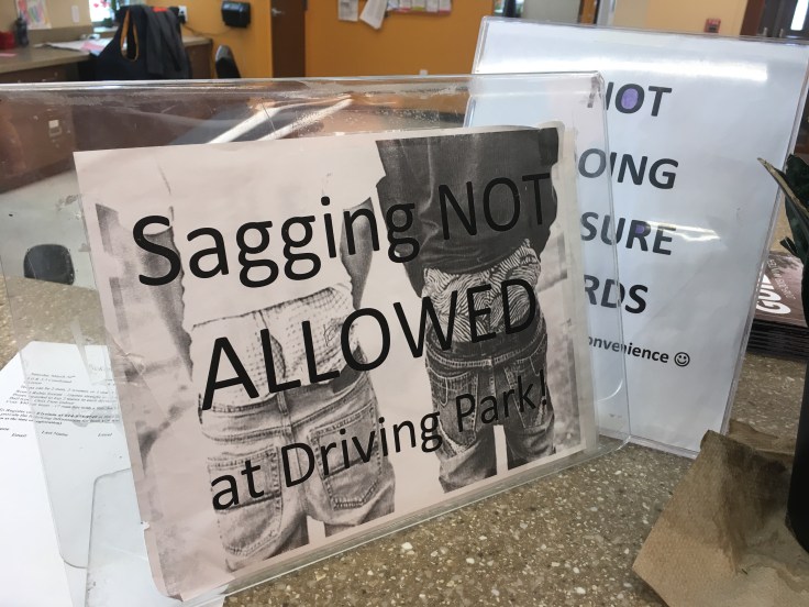 Funny to see sagging isn’t allowed in a rec center dedicated to pickleball, a sport dominated by 70 year olds.