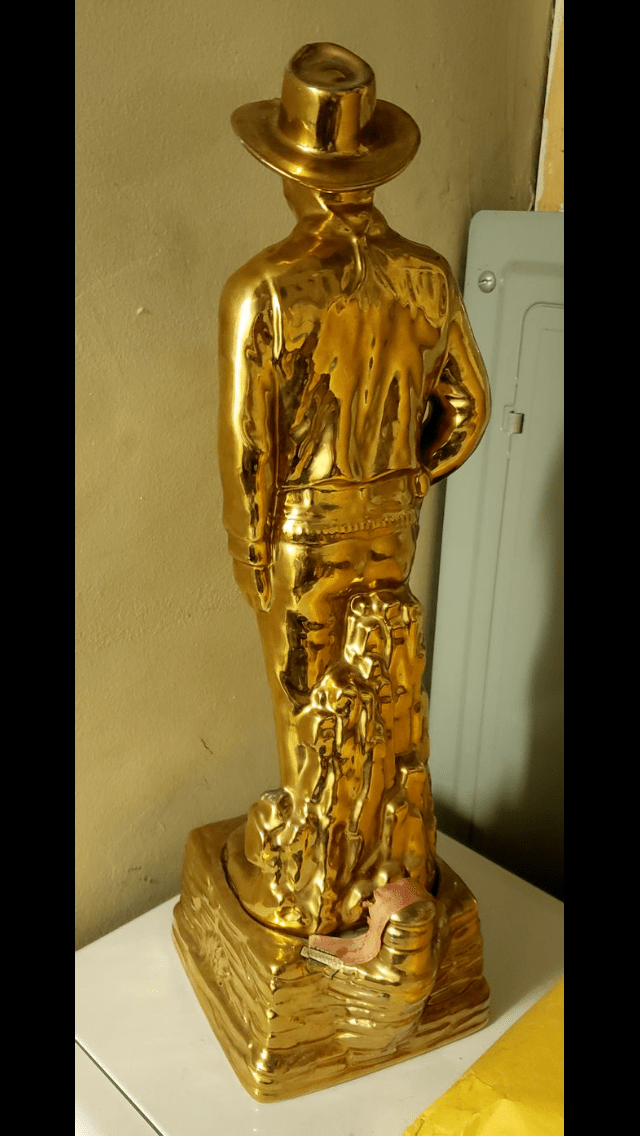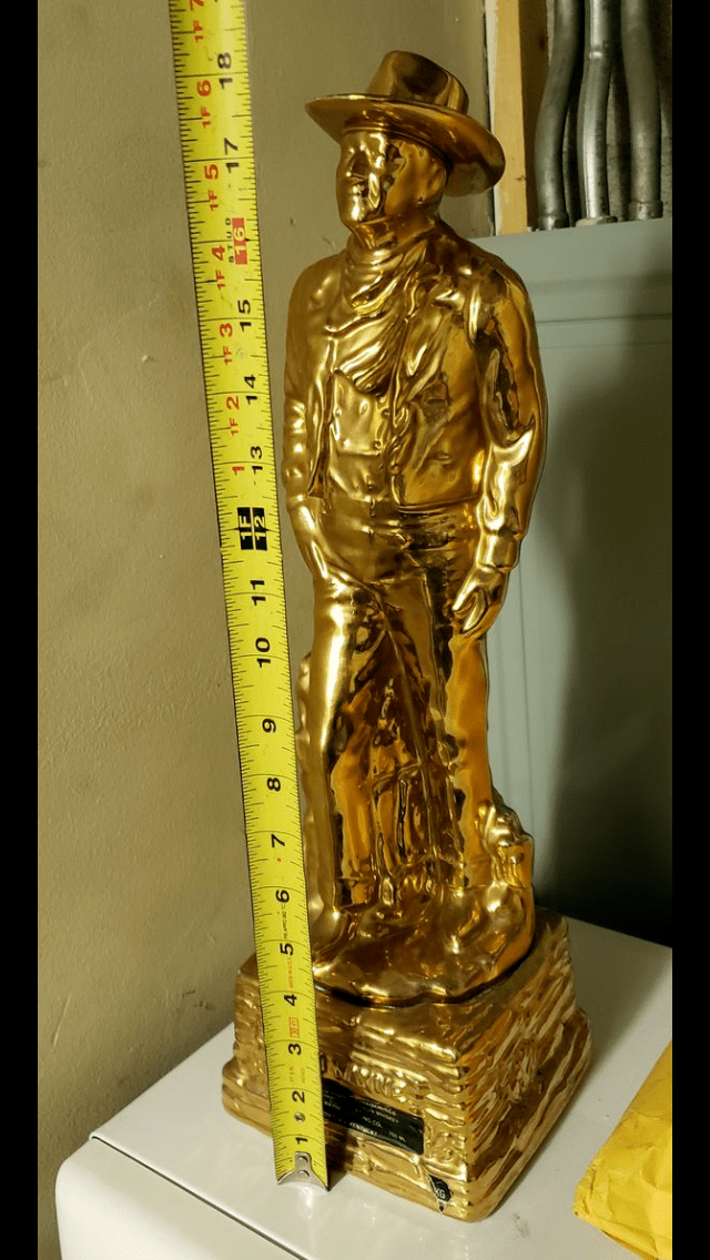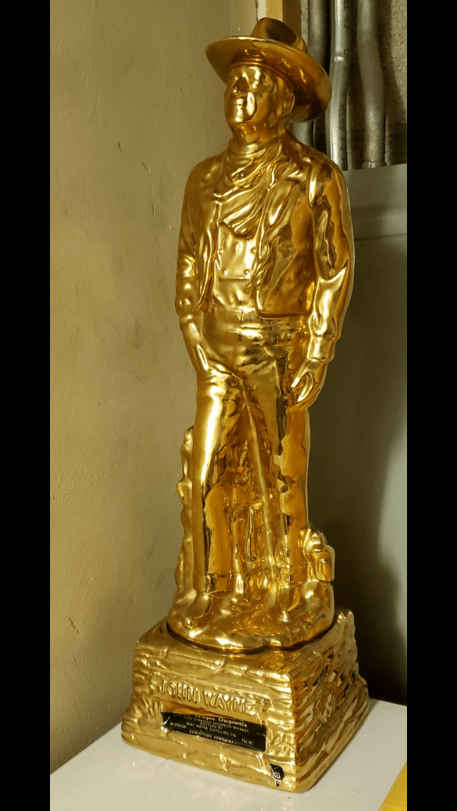 For a mere $275, you can have this John Wayne limited edition, gold plated decanter with 750ml of whiskey that originally came with it. That means the bottle is still unopened with original contents inside.
