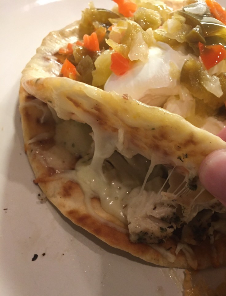 Low-carb tortillas, chicken breast, mozzarella, goat cheese, sour cream, giardiniera, Himalayan salt, cracked pepper, all cooked on a cast iron skillet…BABY, YOU GOT A STEW GOIN’!