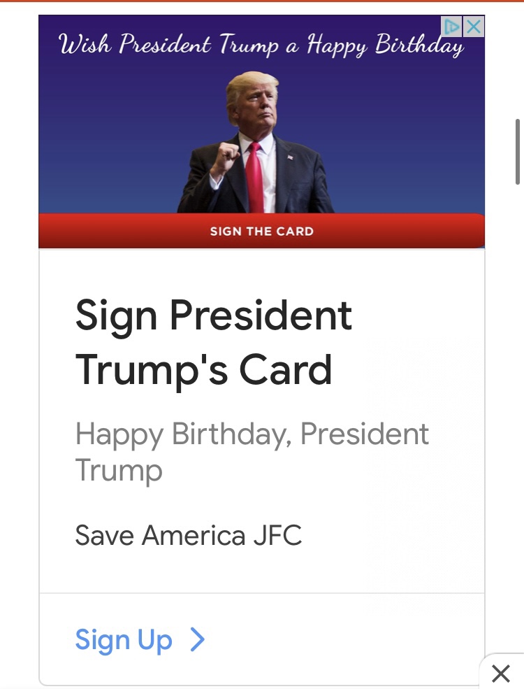 Shit. I’m a month and a half late here but so are the people who posted the advertisement far below. I hope that all of you wished President Trump a happy birthday back in June. Sort of a “golden birthday” in the sense that it’s the second birthday of his second term.